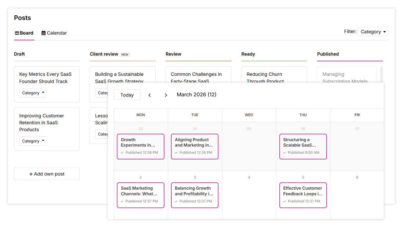 More posts, more reporting. Less effort.